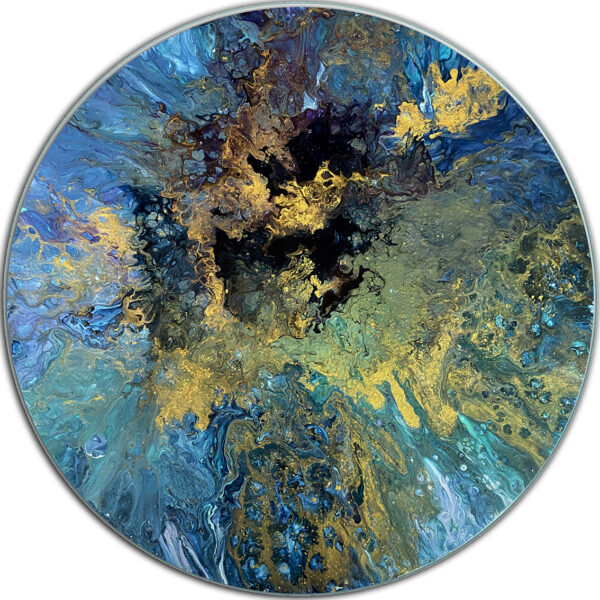 THIS IS AN ORIGINAL PAINTING ON A LAZY SUSAN WITH TEMPERED OPTI-WHITE PROTECTIVE GLASS